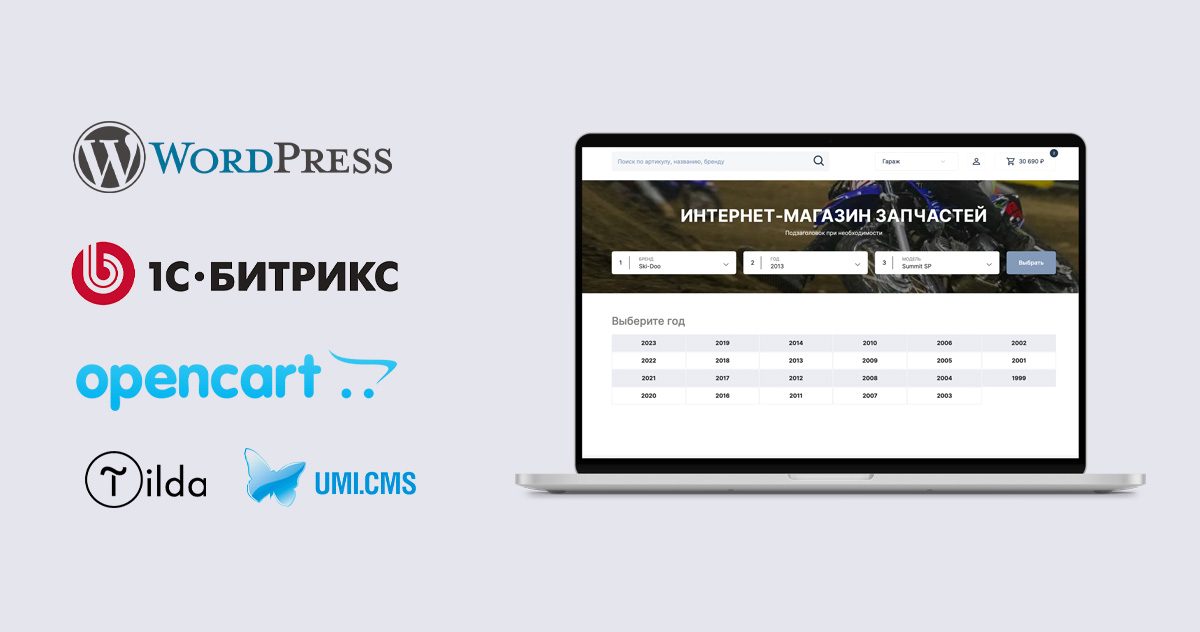 Неважно, на чём сделан сайт — каталоги бесшовно встроятся и будут работать с корзиной, интеграциями, личным кабинетом и остальными функциями..