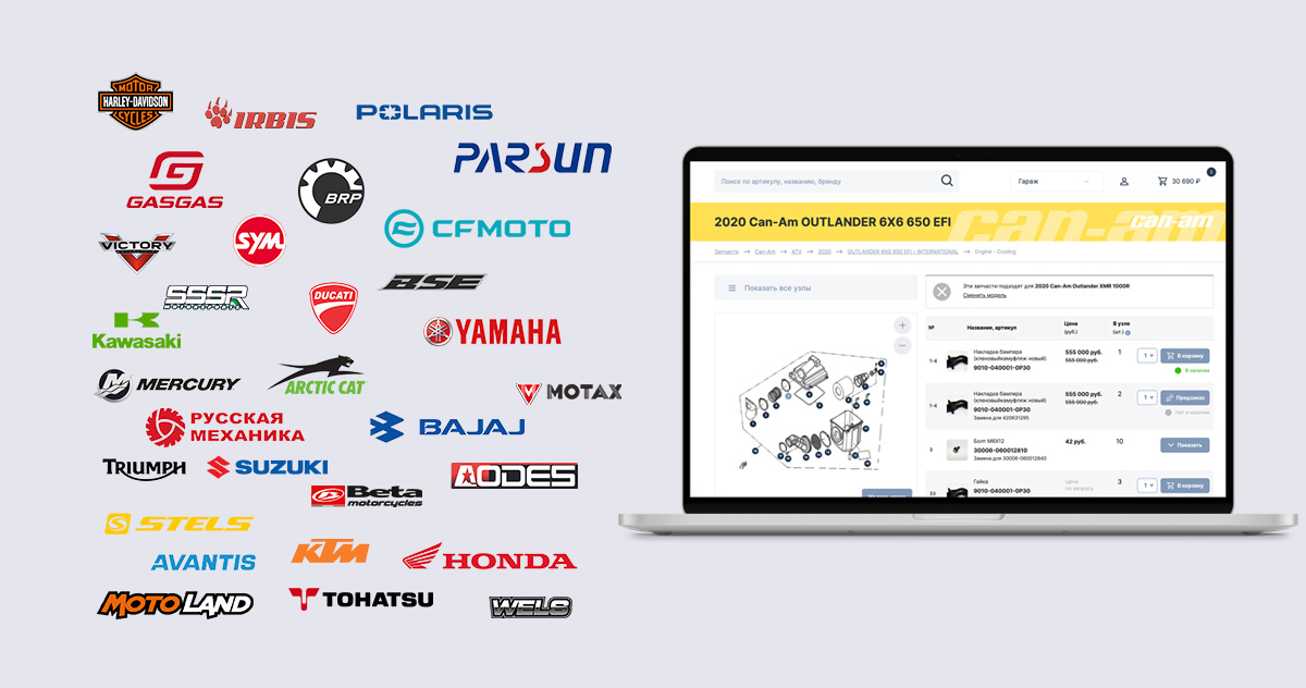 Пользователи легко смогут найти запчасть по бренду, году, модели, артикулу или на схеме узла. Ещё в каждом товаре указана совместимость с моделями.