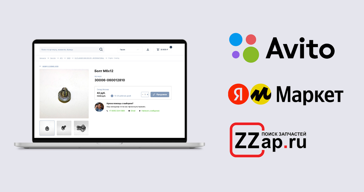 От вас — регулярная выгрузка и официальные артикулы в 1С. От нас — синхронизация, чтобы покупатели видели актуальные остатки и цены.
