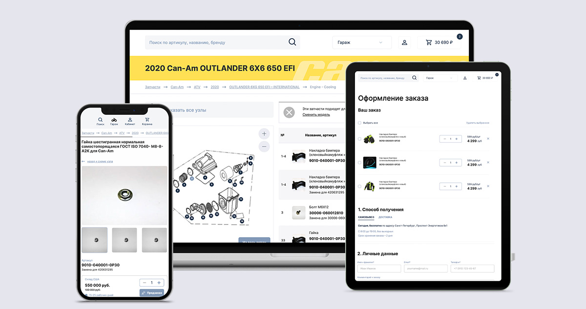 Пользователи легко смогут найти запчасть по бренду, году, модели, артикулу или на схеме узла. Ещё в каждом товаре указана совместимость с моделями.